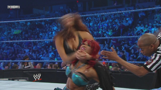 elbow. Alicia avoids a clothesline but Nikki grabs her hair and slams